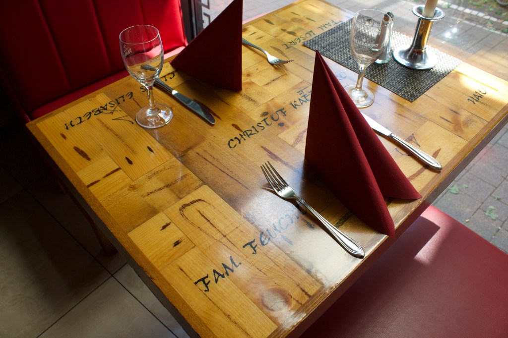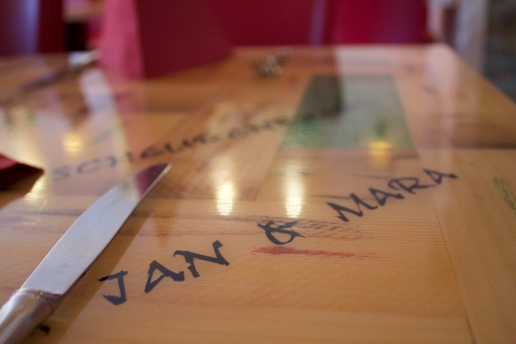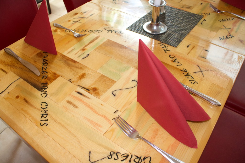 Unsere Tische Da wir im Pane e Vino eine große Familie sind, haben wir die (Familien-)Namen unserer Stammgäste auf allen unseren Innentischen verewigt. #grandefamiglia